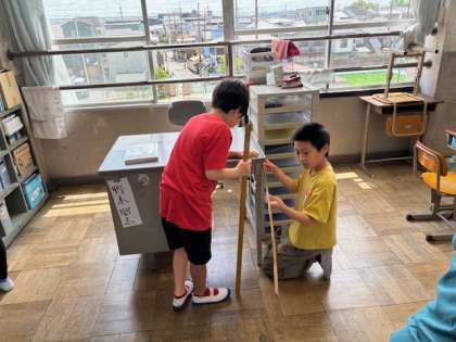 では、「教室にあるモノの体積は、いったいどれくらいの大きさなのか?」に疑問をもち、様々なものの体積を求めてみました。