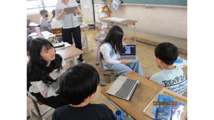 今日の学習では、自分の自己紹介の内容をロイロノートに入れ、友達に紹介をしていました。紹介をする時には、相手の目をしっかり見て、ジェスチャーなどを交えながら楽しんでいる姿が印象的でした。