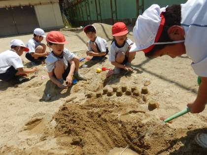 図画工作科で「すなやつちとなかよし」の