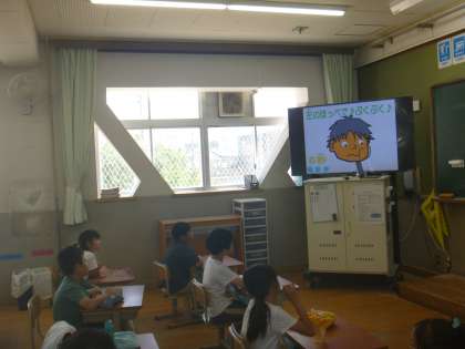 食後にはみがきをして、フッ化物洗口に取り組んでいます。