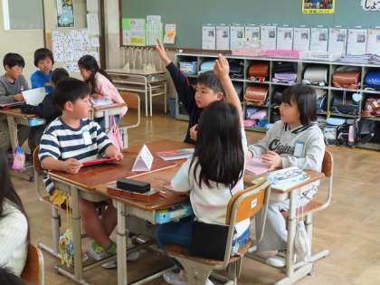 質問をするときには、挙手して指名されてからたずねる。答えてもらった後に感想など一言付けることなど意識して話せるグループもありました。学習後の振り返りでは、「うなずきながら聞くことができていなかった」「話す内容がメモのことだけになってしまった」「もう少しゆっくり話せばよかった」など次時につながる自分の「めあて」に気が付けた児童がたくさんいました。