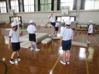 どうすれば高く跳べるのか、お互いにアドバイスをしていきます。