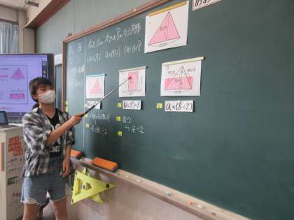 図を見て、文字を使って表された式の意味を考えました。