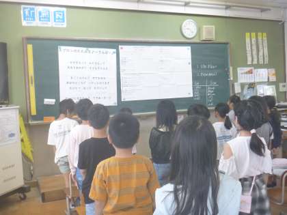 1年生を迎える会にむけて取り組んでいます。1年生のときにしてもらったことを思い出しています。