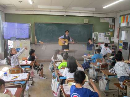 校長先生のギターと歌と給食!!最高ですね!