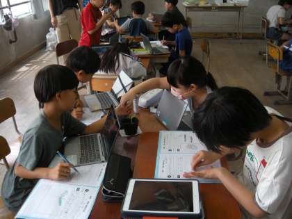 4年生が理科の学習で観察カードに記入していました。