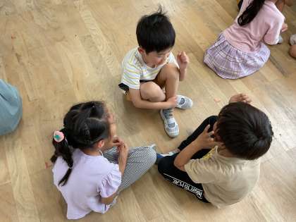 学校探検に行くグループで顔合せをしました。自己紹介をしてお互いの名前と顔を覚えました。
