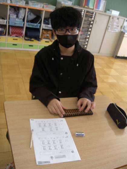 6年生が算数でそろばんをつかって計算していました。