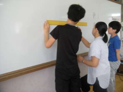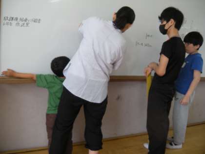 黒板半分までの長さが6年生や担任の両手を広げた時の長さぐらいだということから,