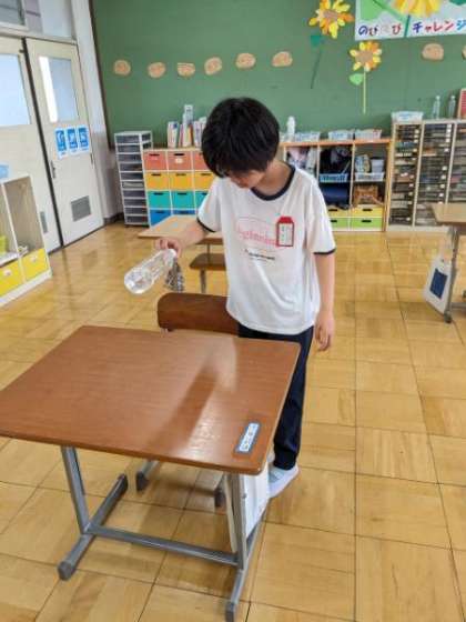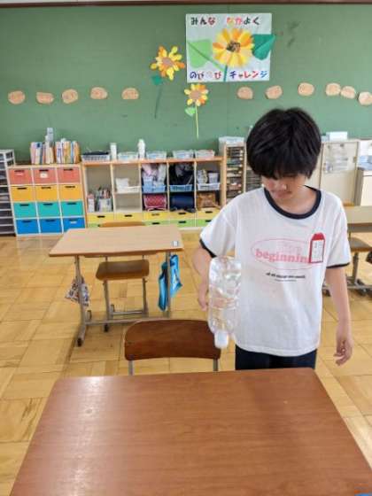 今日は4年生と6年生がペットボトルフリップをしました。