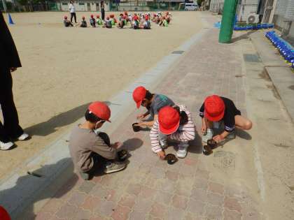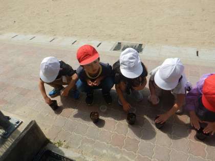 アサガオの他にもいろいろな花を育てることになりました。前から知っている花を選んだり、種の形に興味をもって選んだり、花や葉っぱの様子が気に入って選んだりして、一人一つ種をまきました。こちらも芽が出るのが楽しみです。