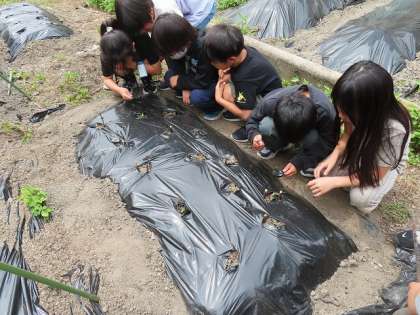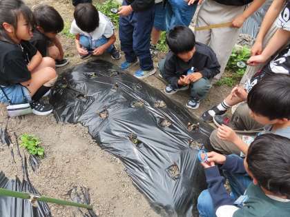 種まきをして10日ほどがたちました。「ホウセンカ」の子葉も順調に発芽し、その成長の様子を観察します。ヒマワリと比べて「子葉の形は少し丸く、色は黄緑。」「高さも1センチ5ミリほど」と、「形・色・大きさ」をしっかり観察していました。
