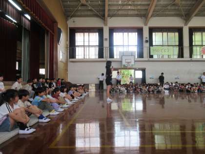 全校の児童の前で、はじめの言葉を代表児童が言ってくれました。