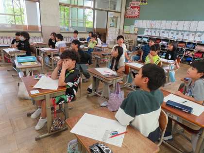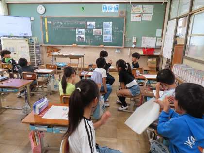 校区たんけんに行ったときにどんなものがあったか、疑問に思うことなどをみんなで話し合いました。「今まで気にしてなかったけど、確かに・・」という声が聞こえていました。
