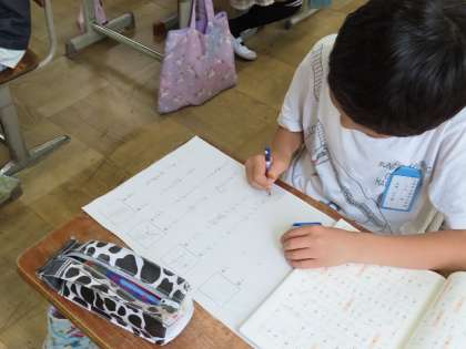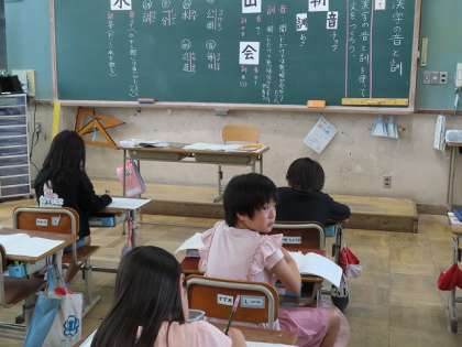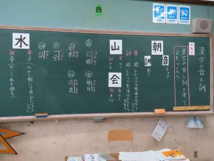 「漢字の音と訓」の学習をしました。漢字ドリルや国語辞典、教科書の巻末にカタカナと平かなで分けて書いていある意味や音・訓の区別の仕方を知りました。「水」という漢字の訓を使って「水遊びをした。」音を使って「水筒にお茶をいれた。」など短文をいろいろな漢字で作りました。