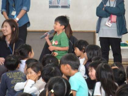 終わりに、ひまわりの2年生が、「すごかったです。」と、全校児童の前で感想を発表していました。