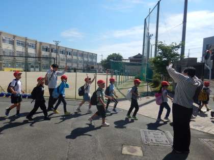 校長先生や教頭先生に見送られて