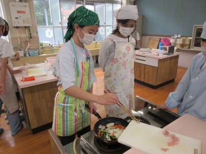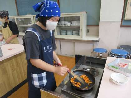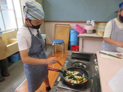 野菜をいためました。野菜を入れる順番に気を付けながらいためることができました。