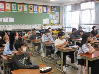 スクールサポーターの方が薬物乱用について授業をしてくださいました。みんな真剣に聞いていました。