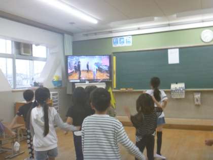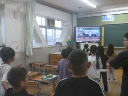朝から、ダンスにチャレンジしています。先生たちのダンスを見ながら、頑張って踊っています。