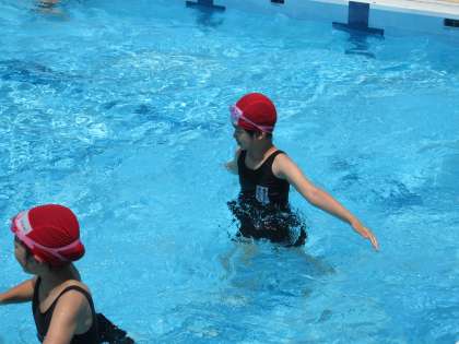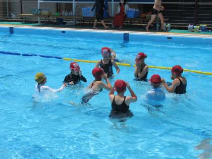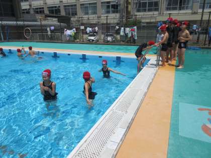 1年ぶりなので、しっかりと水泳学習のルールを確かめてから、もぐる練習などをしました。