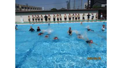 今日から水泳学習が始まりました。本日の流れを確認した後、水なれの内容を確認し、ねらい1 今できる泳ぎ方に挑戦しました。