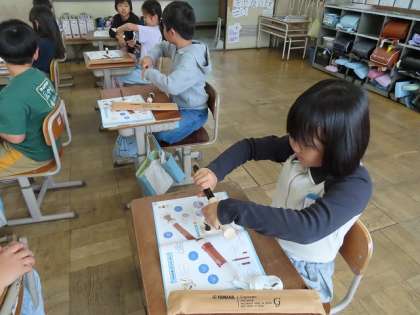 待ちに待ったリコーダーの学習が始まりました。リコーダーの手入れの仕方や仕組みを確認して、先の部分を吹いていました。指づかいの簡単な音からタンギングの練習と共に学習を進めていきます。