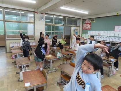 基本の動きの練習を終え、いよいよ音楽に合わせて体を動かしていきます。ヨガの動きも上手になってきました