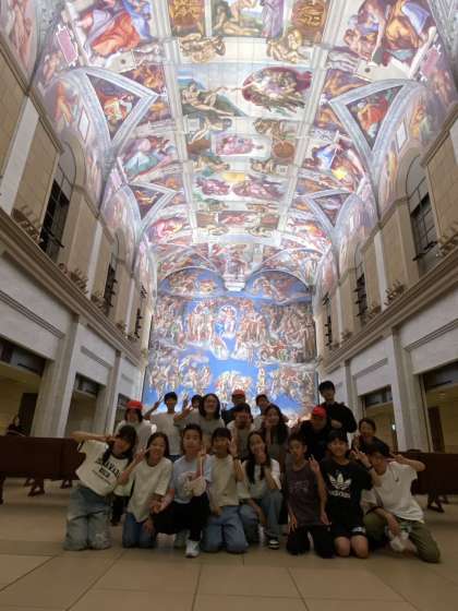 世界の名画の前で、子どもたちの笑顔も最高潮です。