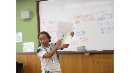 今、総合的な学習の時間で万願寺とうがらしを育てています。どのように育てれば、立派な万願寺とうがらしを育てることができるのかを、稲垣さんに教えていただきました。