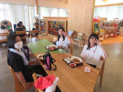 お昼はカレーです。たくさん活動した後のカレーはとってもおいしかったです。