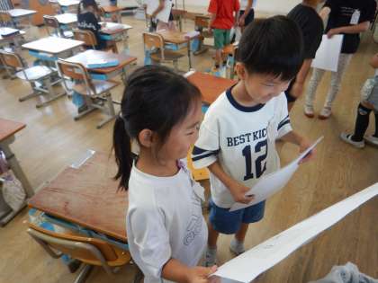 『つぼみ』の教材文のように、「とい」と「こたえ」のあるクイズを作りました。作ったクイズと説明を分かりやすく伝えるために、クイズを出す練習をしました。