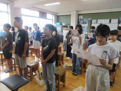 27日(金)にある3校合同音楽鑑賞会で歌う「ビリーブ」の練習をしました。本番に向けて一生懸命練習しています。
