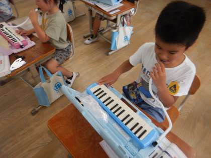はじめての鍵盤ハーモニカに子どもたちは大喜び。