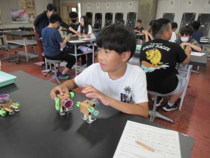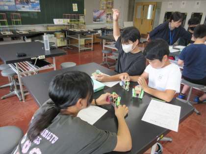 2組は「心もゆさぶるしん動の科学」という学習をしました。しん動を利用した実験をたくさん行いました。