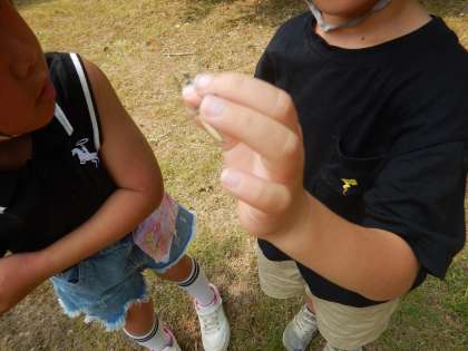 淀城跡公園へ、夏を見つけに出かけました。草むらにバッタやカマキリがいました。