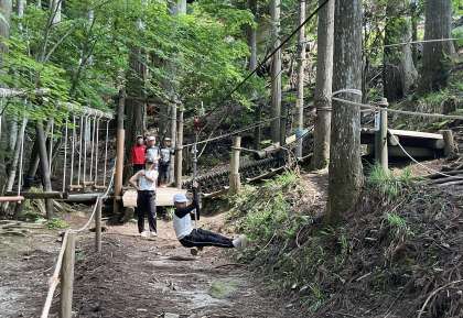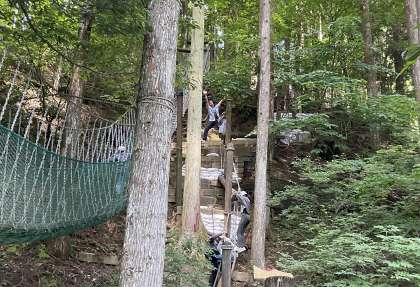 アスレチックはだんだん上手になってきて、体をうまく使って楽しむ人たちが増えてきました。最初は怖がっていた人も、ゆらゆらする動きを楽しんでいました。