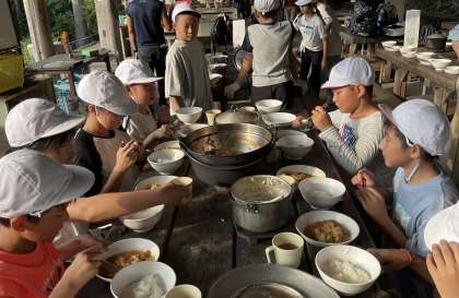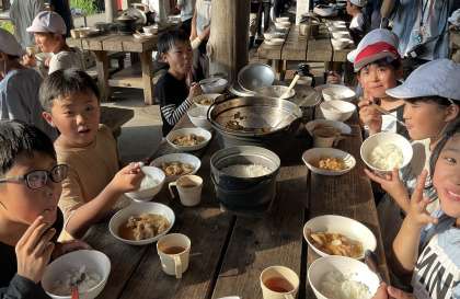 おいしいおいしい鶏すき焼き風煮の出来上がりです。ご飯もふっくらもちもち。とってもおいしい抜群の出来上がりでした。「お家の人にも食べてみて欲しかったなあ。」