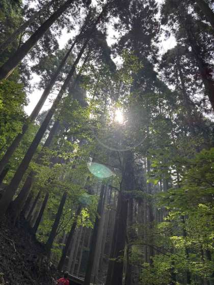 ゴシ谷ハイクの始まりです。木漏れ日が気持ちいいです。森のご褒美いただきます。
