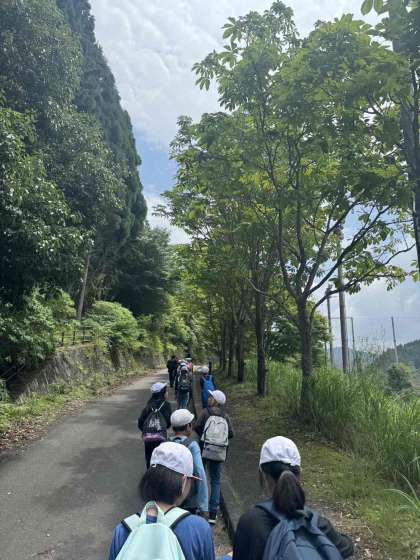 親水広場からまた歩いて帰ります。ちょっと疲れてきたので、みんなで校歌を歌って帰りました。そして、「ビリーブ」の歌を2番まで歌い終わったら、ちょうど山の家にたどり着きました。