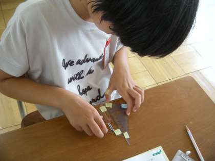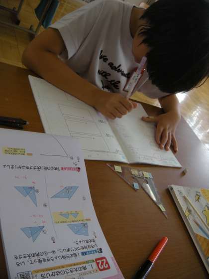 4年生が三角定規二つをつかってできる角度を調べる学習をしました。