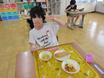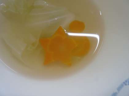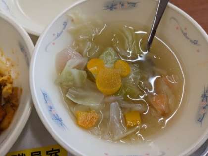 今日の給食の野菜のスープ煮にハッピーキャロットが入っていました。