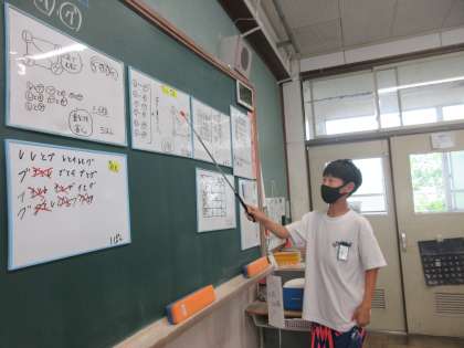 4チームが、どのチームにも1回ずつあたるように試合の組み合わせを考えました。落ちや重なりがないように、表や図を使って考えました。