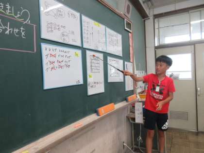 考えをみんなの前で発表しました。友達の説明に付け足して説明する場面もありました。