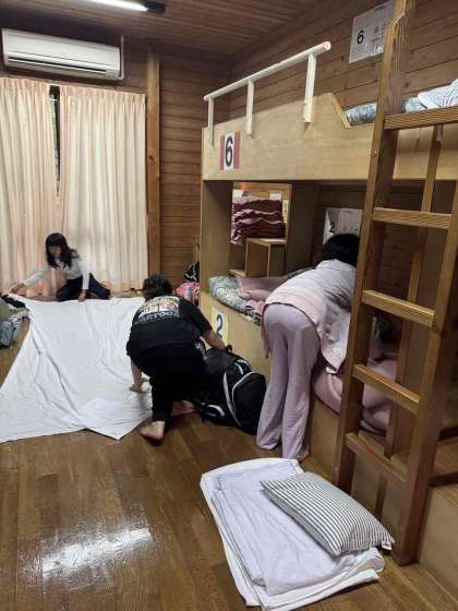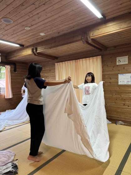最終日です。まずは寝具の片付け。協力して進めます。