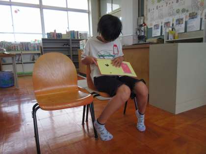 図書館司書の木曽先生に「おばけマンション」という絵本の読み聞かせをしてもらいました。
