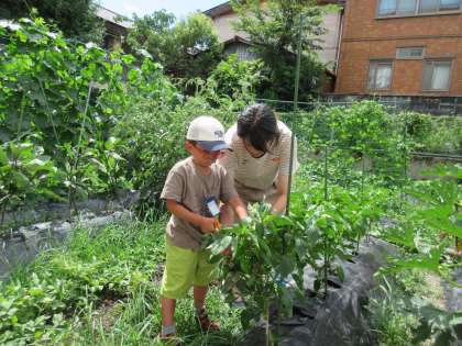 赤くなり始めたトマトが鳥に先ドリされていました。