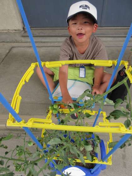 ミニトマトの観察の様子です。いつも真剣で細かいところまでじっくり見ています。