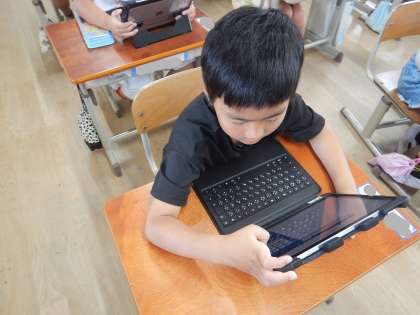 iPadを使って、算数の学習の復習をしました。たくさん問題が解けると嬉しそうでした。
