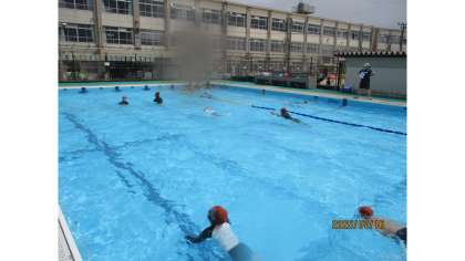「天気がどうなるかなぁ」と思っていたのですが、天気も晴れてきたので、今年度最後の水泳学習をしました。初めの頃に比べると、たくさんの子どもがクロールや平泳ぎで25mを泳げるようになりました。来年度の学習では、今よりも距離をのばしてほしいと思います。